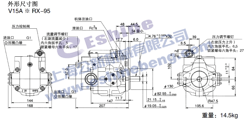 变量柱塞泵V15A3R-95RC尺寸图下载 变量柱塞泵V15C**RHX-95尺寸图下载