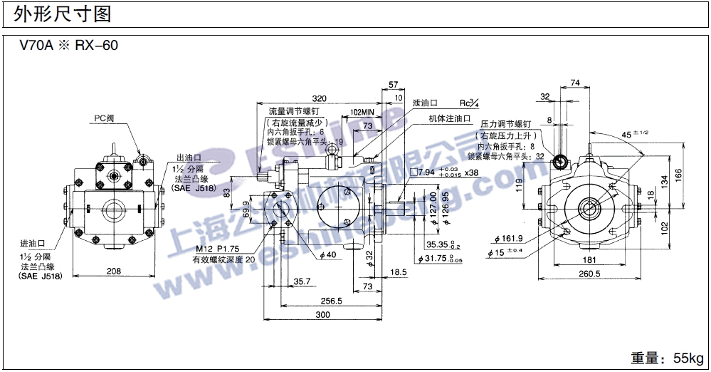 变量柱塞泵V50A3RX-20尺寸图下载 变量柱塞泵V50SA**RX-20尺寸图下载